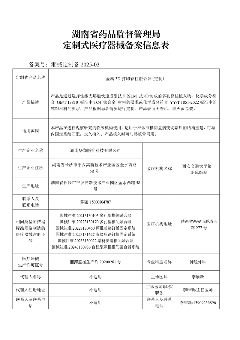 定制式AG真人娱乐娱乐备案信息表(湘械定制备2025-02)