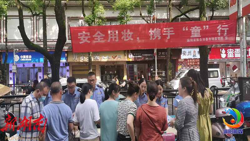 为进一步加强化妆品监管相关法规的宣贯,普及化妆品安全使用知识,持续增强全县消费者安全用妆意识,牢牢守住化妆品安全底线,6月22日,麻阳市场监督管理局在步行街启动了以“安全用妆,携手‘童’行”为主题的化妆品安全科普宣传周活动。